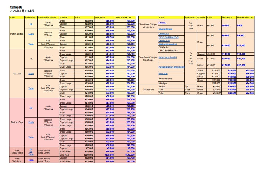 皆様には大変恐縮ではございますが、昨今の素材の価格高騰により、2026年4月1日より製品価格を改定させていただきます。
