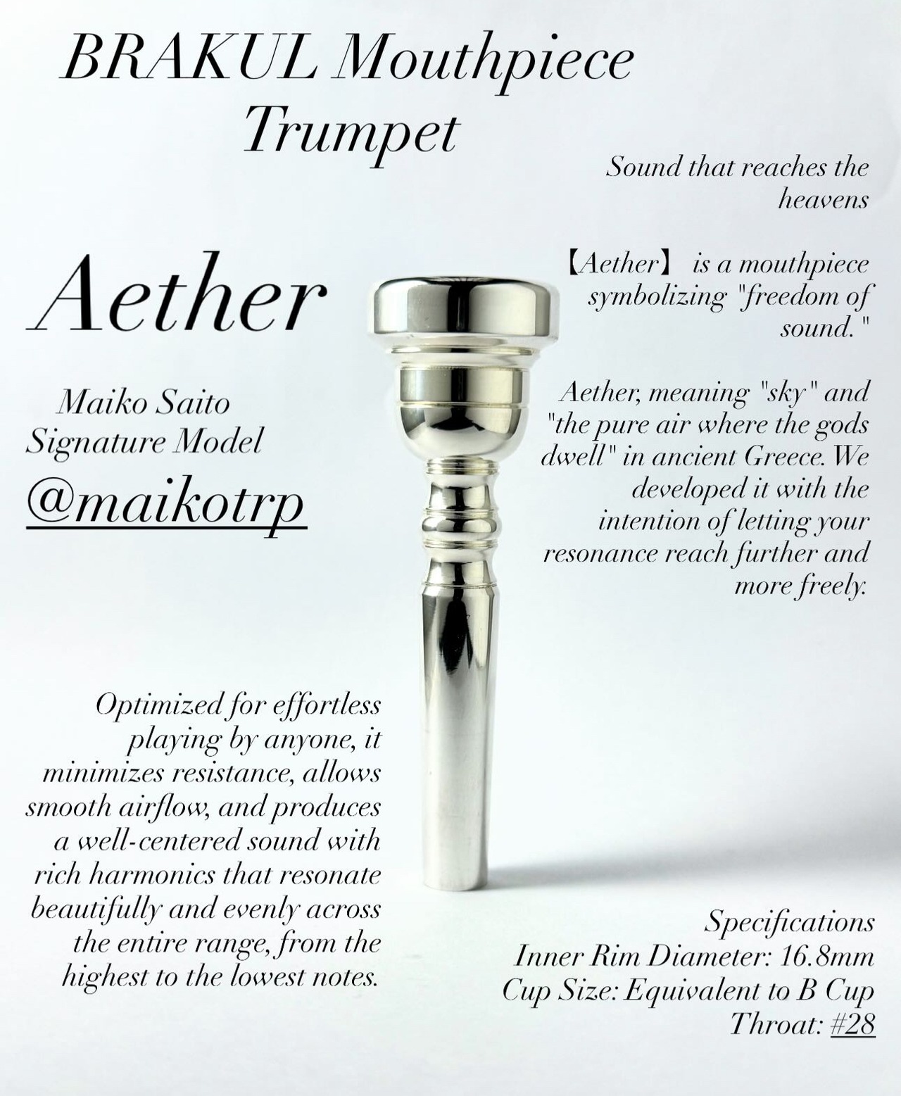 古代ギリシャで「天空」「神々の住む純粋な空気」を意味する Aether(エーテル)。あなたの響きが、より自由に、より遠くへと届くよう想いを込めて開発しました。